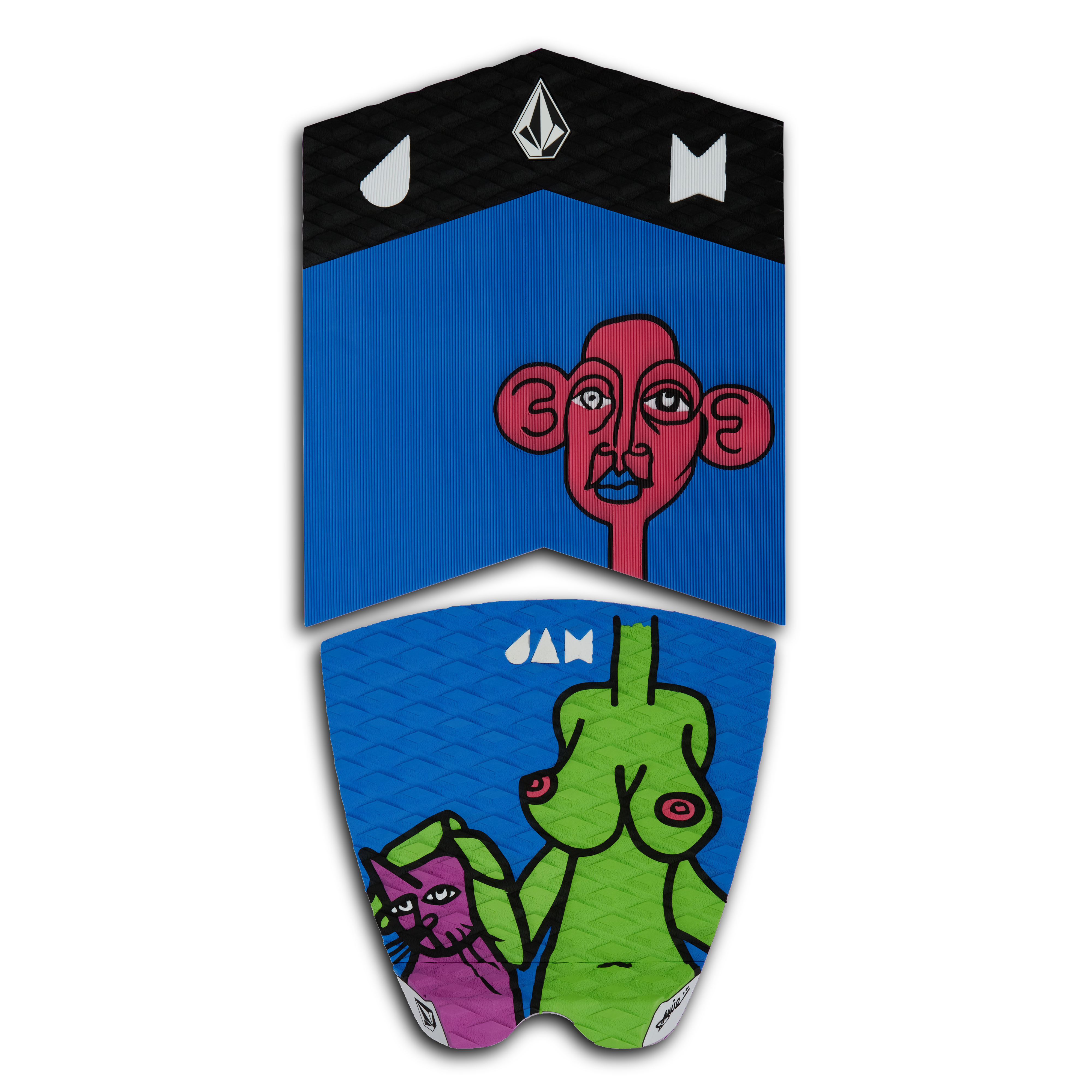 Zusammen mit JAM Traction hat Volcom sich an einem limitierten Surf Pad ausprobiert und hat damit ein Teil für echte Sammler entworfen. Jamie Lynn ist nicht nur begnadeter Snowboarder der ersten Stunde, sondern auch seit Jahren bei Volcom im Künstler- bzw Designerteam. Das Pad besteht aus zwei Teilen und somit wirst Du nie wieder Wachs-Probleme haben.