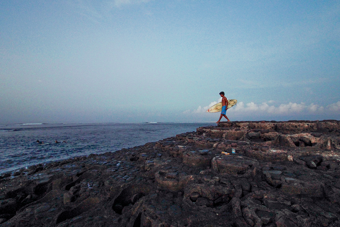 Ich patsche mit meinen Zehen im Wasser. Klar, surfen ist cool – aber es ist nicht nur das. Sich wirklich dem Surfen zu verschreiben bedeutet auch ein ziemlich rustikales Leben zu führen. Sich von Familie & Freunden zu entfernen, in fremde Länder zu reisen. Surfer haben prinzipiell von Natur erst mal nicht viel. Nicht viel Geld, nicht viel Eigentum, nicht viele ernsthafte Beziehungen.