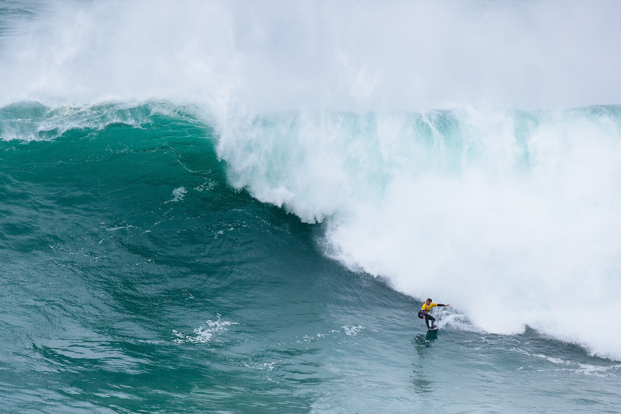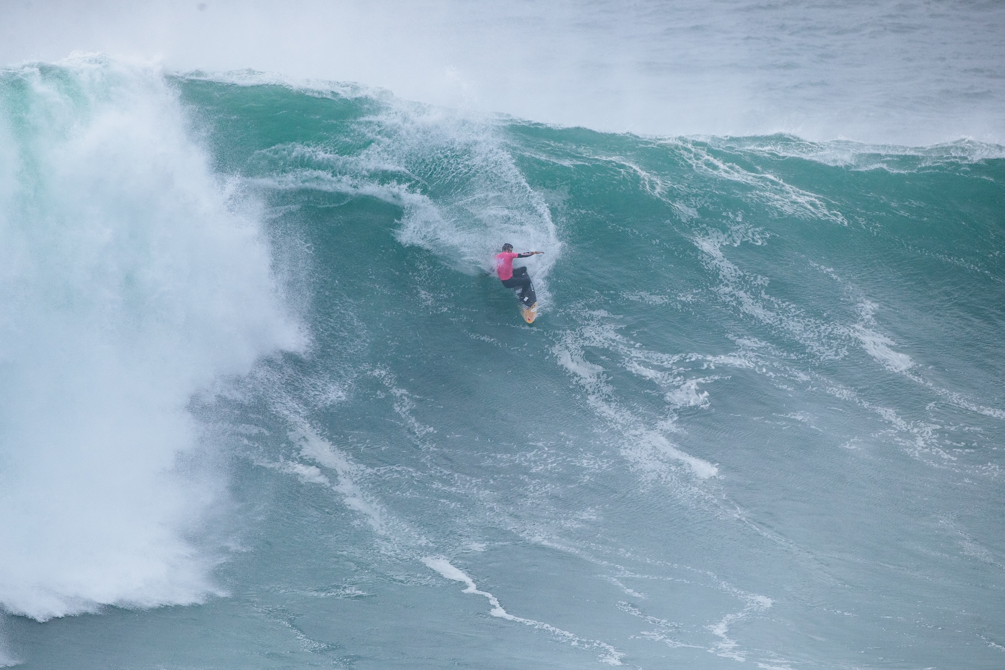 Die TUDOR Nazaré Big Wave Challenge der World Surf League (WSL) bot am Praia do Norte in Nazaré, Portugal, ein atemberaubendes Spektakel. Bei herausfordernden Bedingungen mit Wellen von 7,5 bis 10,5 Metern zeigten die besten Big-Wave-Surfer ihr Können. Trotz starkem Offshore-Wind, der die Abfahrten auf den gigantischen Wasserwänden noch anspruchsvoller machte, nutzten die Athleten die konstanten Wellen für beeindruckende Performances. Im Laufe des Nachmittags baute sich der Swell weiter auf, was die Intensität des Wettkampfs noch steigerte.