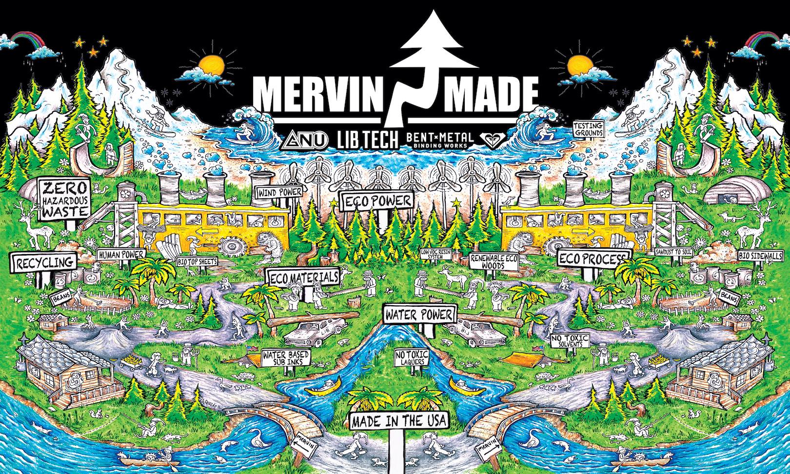 Mervin Made - Das steht für die eco-friendly Produkte der Brands Lib Tech, Gnu, Roxy und Bent Metal.