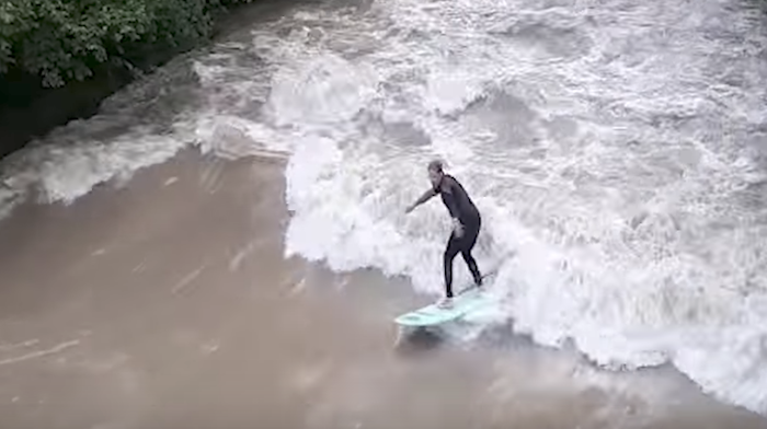 Auch in Wangen im Allgäu hat der hohe Pegel der Flüsse die Surferherzen höher schlagen lassen. In der Argen funktionierte nämlich die stehende Welle!