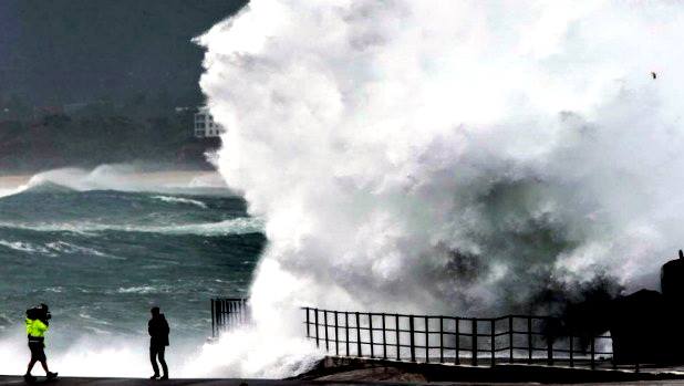 Während des unglaublichen Sturmes in Sydney holten sich diese Jungs den Adrenalin-Kick des Jahres und kletterten zum North Curl Curl Rockpool. Nicht zu Nachahmung empfohlen.
