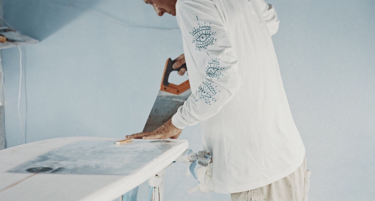 Ich shape seit ungefähr einem Jahr. Alle Boards entstehen in Zusammenarbeit mit meinem Vater und meinem Bruder. Es ist also ein richtiges Family-Business. Ich shape, laminiere und schleife alle Bretter selber. Das Gefühl, am Ende das selbst produzierte Produkt zu verkaufen, ist unbezahlbar und ist sehr befriedigend! Aber es ist eine toughe Industrie. Und ich mache da niemanden etwas vor, wenn ich behaupte, dass ich ab und zu Probleme habe die Miete zu zahlen (lacht).