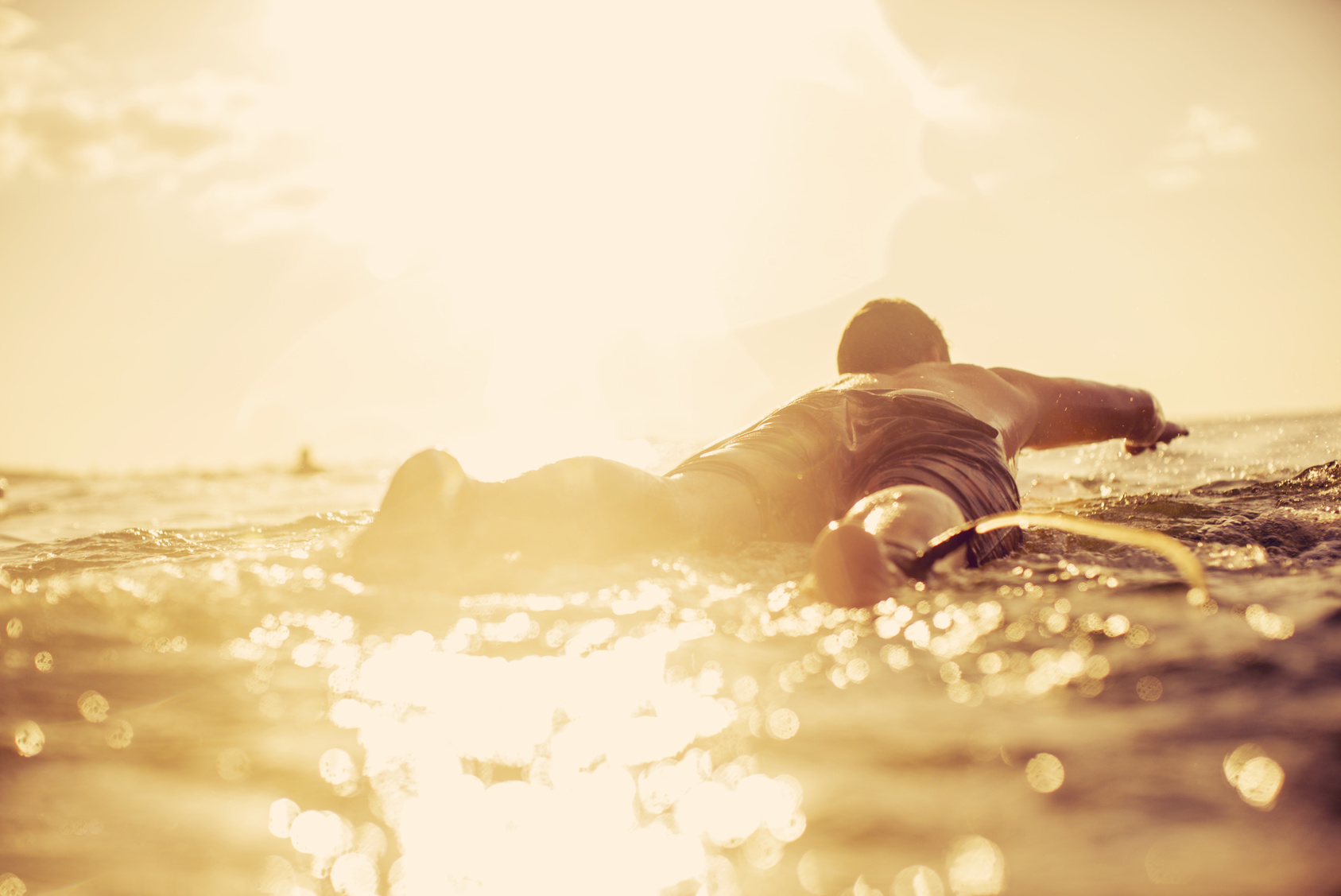 Asanas für Surfer: Wenn Du Yoga in Deinen Trainingsplan integrieren willst, solltest Du Asanas durchführen, die den Fokus, die Kraft, die Balance und die Flexibilität schulen. Die Heuschrecke (Shalabhasana) ist wie geschaffen dafür, Dich für den Surfurlaub fit zu machen. Denn hierbei trainierst Du die Muskulatur, um den Oberkörper beim Paddeln vom Brett zu heben. Auch die Delfin-Stützposition hilft Dir, Kraft in den tiefen Muskelschichten und im Schultergürtel aufzubauen, damit Du besser paddeln kannst. Mit dem Adler (Garudasana) dehnst Du die Muskulatur zwischen den Schulterblättern, die nach einer langen Surf-Tour oft sehr verspannt ist. Auch die Vorbeuge mit Schulterstretch, eine Prasarita Padottanasana Variation, öffnet die Schultern und dehnt den Schultergürtel. Auf diese Weise machst Du Deine Schultergelenke beweglich.
