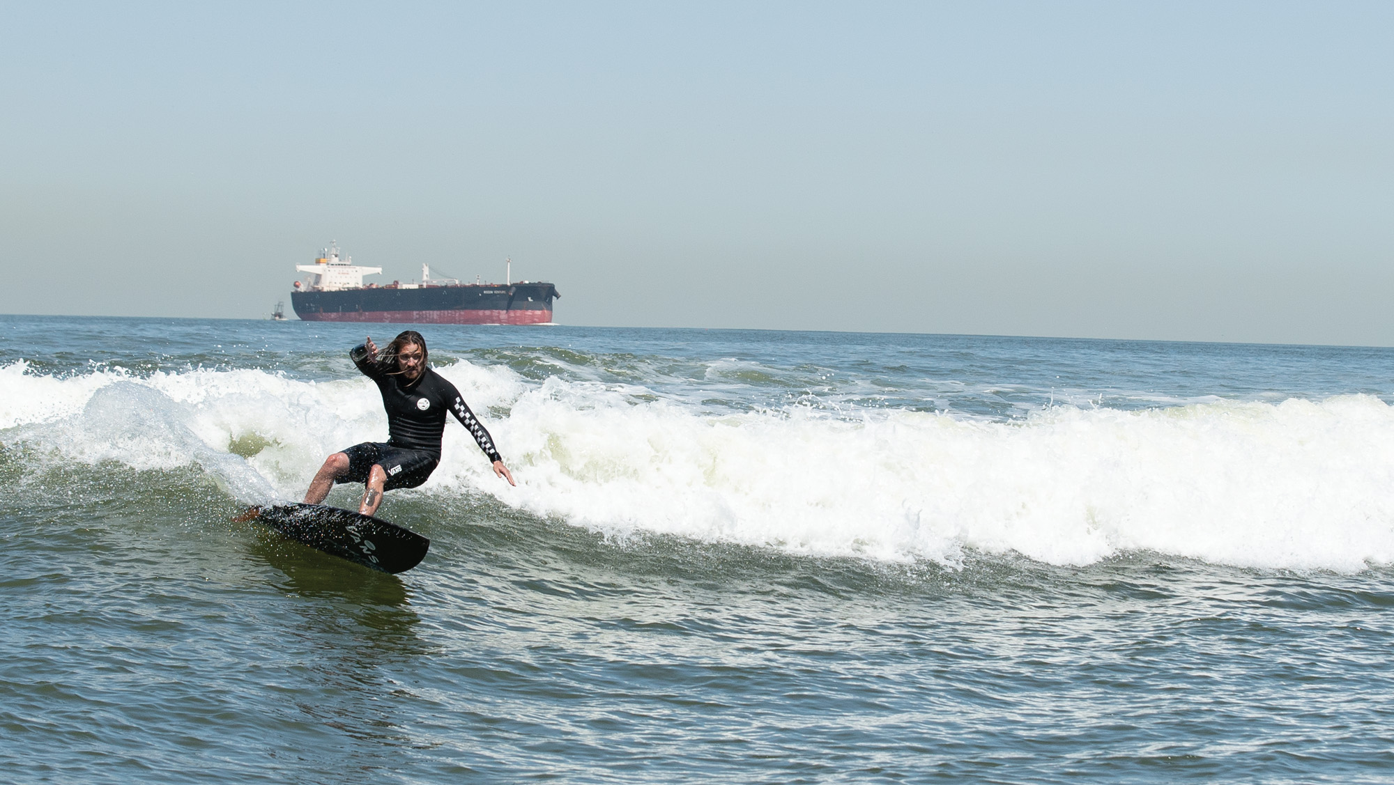 Außerdem handelt es sich bei dem Schiff, das einen nahezu perfekten Surf produziert, nicht um eine x-beliebige Fähre, sondern um eines der ältesten Motorschiffe der Welt. Die “Cape Henlopen”, so ihr derzeitiger Name, wurde 1943 fertiggestellt, um als “USS Buncombe County” im Zweiten Weltkrieg zu dienen. Dort, wo heute Autos verladen werden, transportiere man früher Panzer. Sicherlich ist die ziemlich veraltete und widerstandsreiche Schiffsform auch einer der Gründe, warum eine so makellose Welle entsteht.